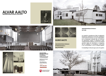 This protestant parish centre is situated directly at the end of two shopping road axes, and forms the northern urban development perimeter of the Detmerode district centre. The free-standing bell tower consisting of nine fair-faced concrete pillars is dominant, though for cost reasons it was not completed at the time, neither was the parish centre living accommodation. Apart from the bell tower all parts of the building are in plain white; the church façade which faces the square has been built using white natural stone slabs. The interior of the consciously unadorned church is characterised by two large arched wooden reflectors under the ceiling to give good acoustics. Apart from this multi-use church hall there is a chapel in the basement to be used exclusively by the church. The parish community area with its different sized halls and a kitchen is separate from the actual church building.